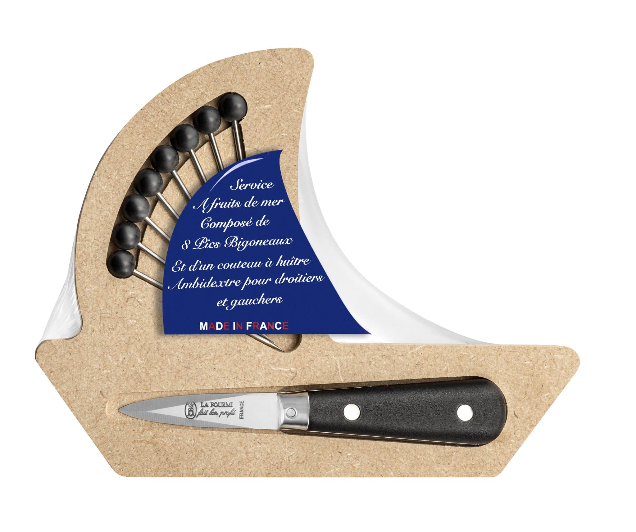 SET VOILIER COMPOSE D’UN COUTEAU A HUITRE AMBIDEXTRE ET DE 8 PICS